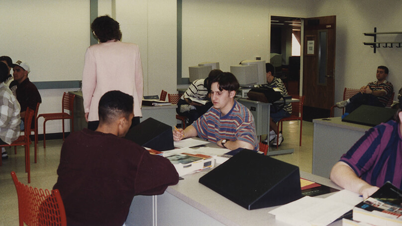 Patrons make use of Purdue’s John W. Hicks Undergraduate Library, which opened its doors in 1982. (Photos courtesy of Purdue Archives and Special Collections)